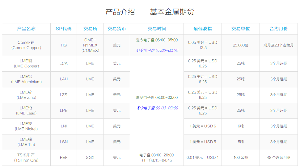 金属期货交易是以金属商品为标的物的期货交易。买卖双方在金属期货交易所,以约定的时间和价格,买进或卖出金属商品的远期交易合同。同农产品期货一样,金属期货是较早出现的期货交易品种。其主要交易对象是金、银、铜、铝等9种金属。金属期货市场每种商品交易的基本重量单位和报价所用的货币币种及货币单位不尽相同,如白金的交易单位为盎司,用美元报价; 铝的交易单位以公吨计,用美元报价; 铅以公吨计,以英镑报价。期限一般是以期货交易日起3个月期。